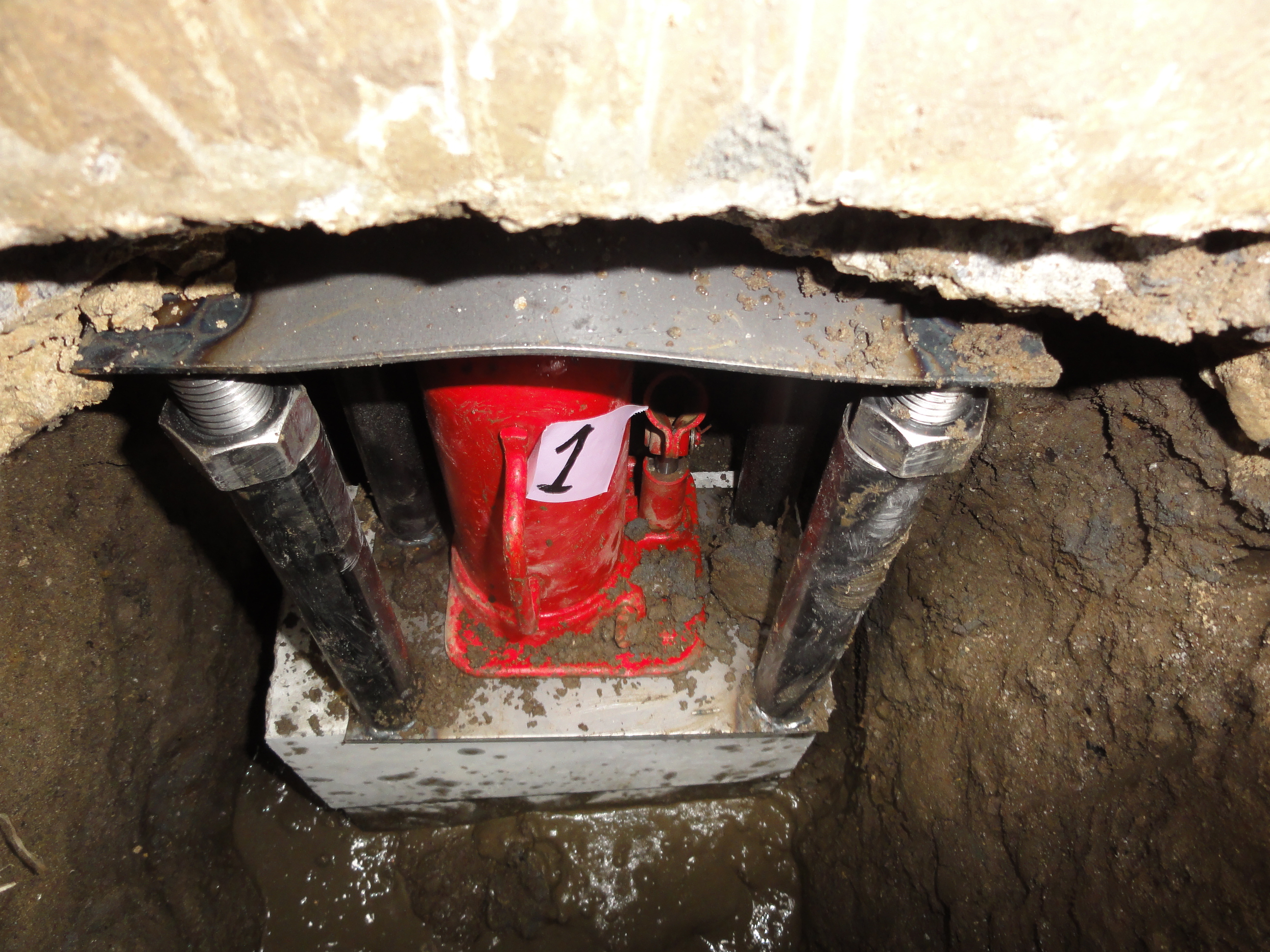 今回は、一戸建ての傾き工事です。 築25年と外見からはそのようには見えない立派な作りでお客様に伺ったところ、リフォームを何回か行っているとのことでした。お客様からはそのリフォーム箇所が傾きによって亀裂が発生したりなどしているため、家の傾きの修正工事を決めたとのことでした。 傾き傾斜は-39mm、約4cmの傾きで、工法は前回と同様のアンダーピニング工法でジャッキをしようして家を持ち上げます。 いつも通りの掘削(穴掘り)、ジャッキ設置の順番で行い、作業終了しました。