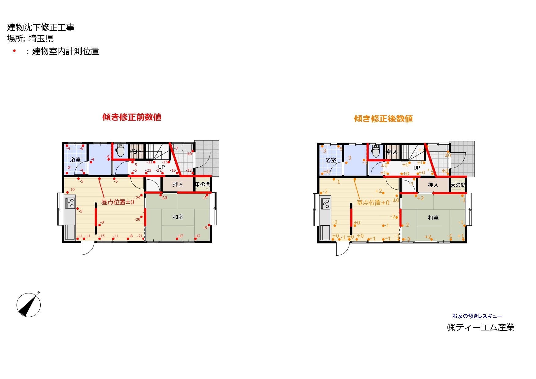 | 【計測】 水平化後、建物室内の数値を確認します。 |