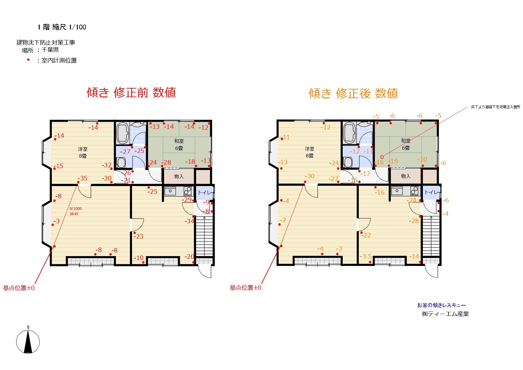 家の傾き工事 千葉県 E社様