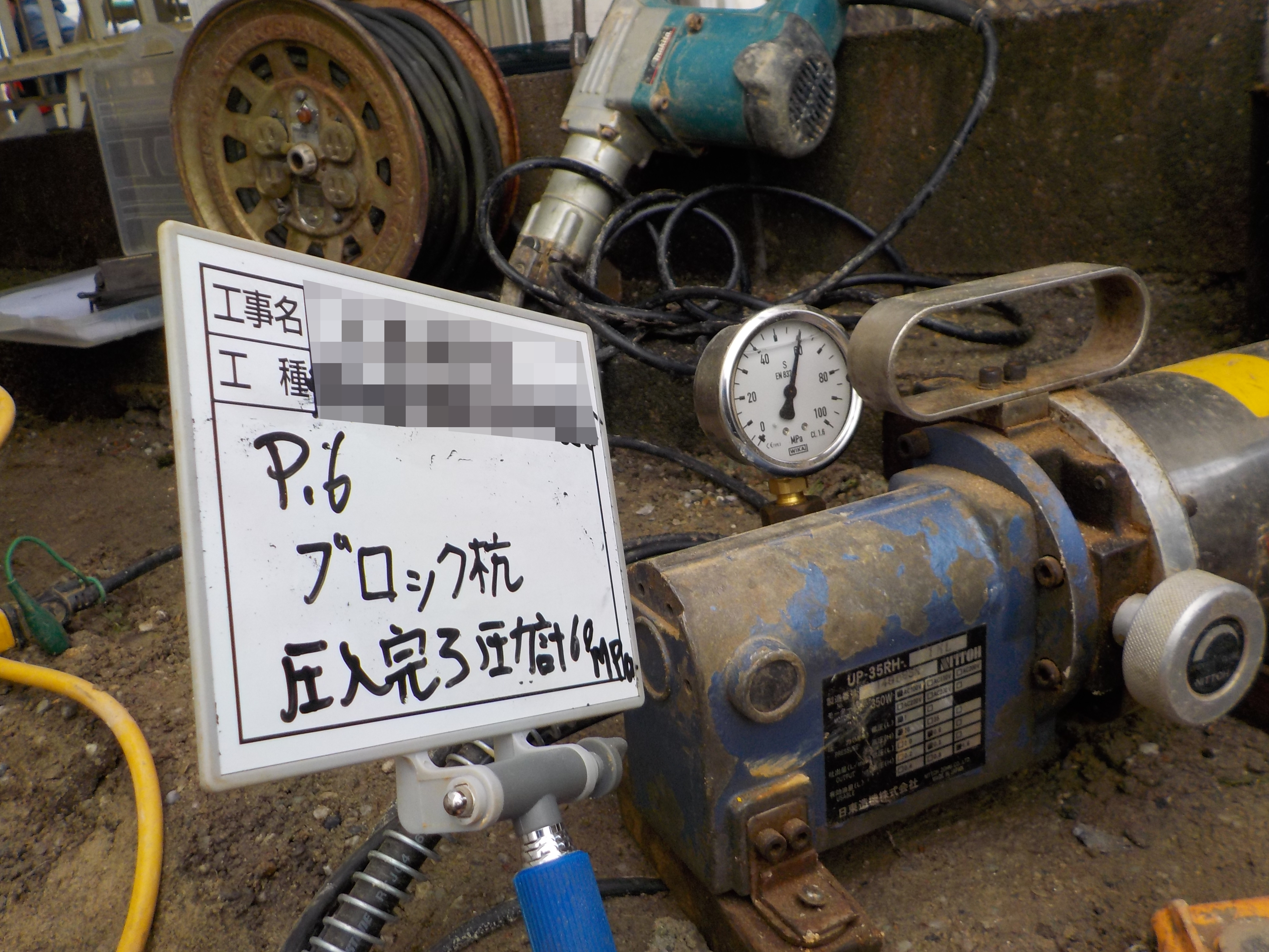 【圧入】 ブロック杭を支持層まで圧入しています。 |