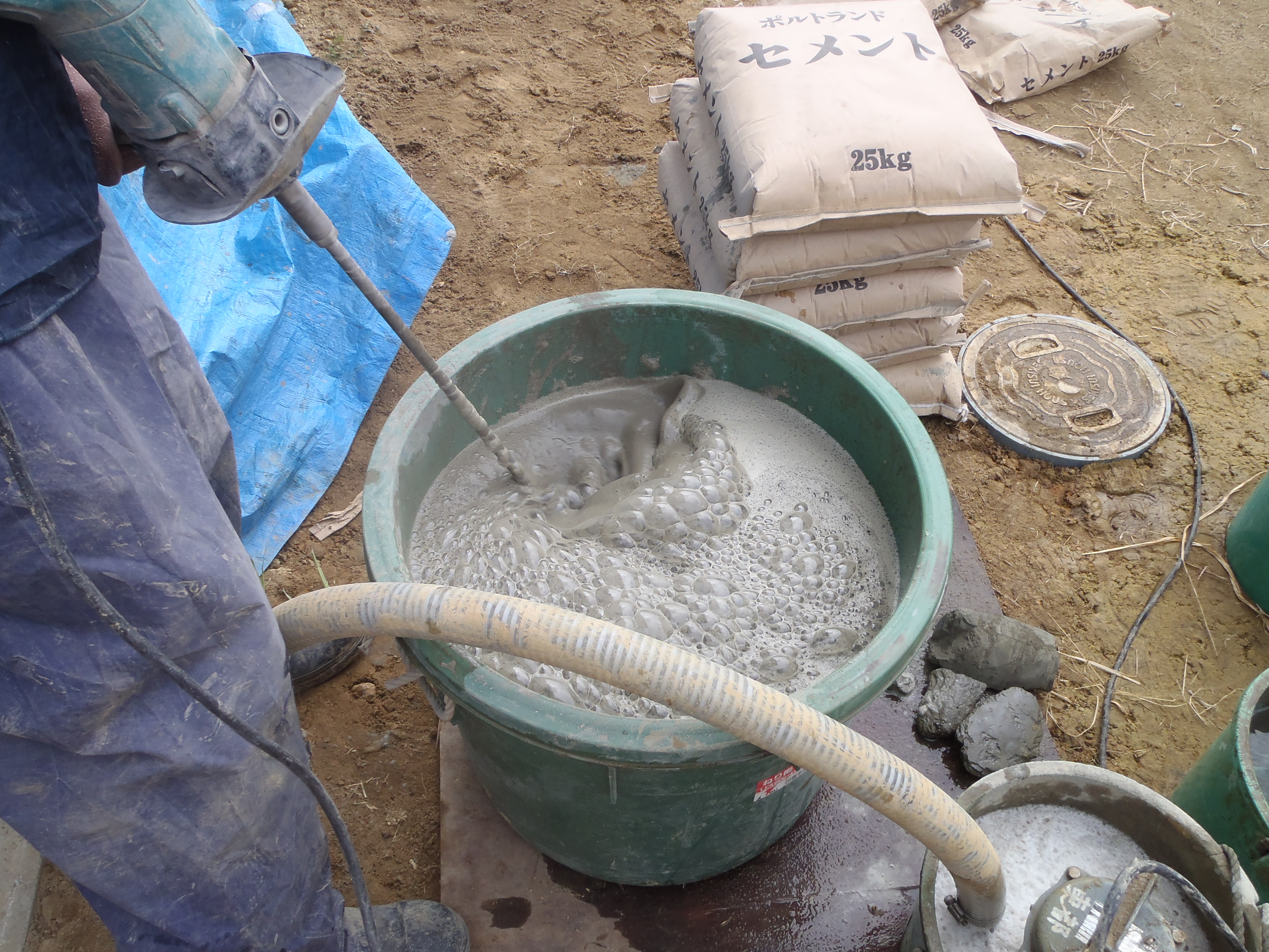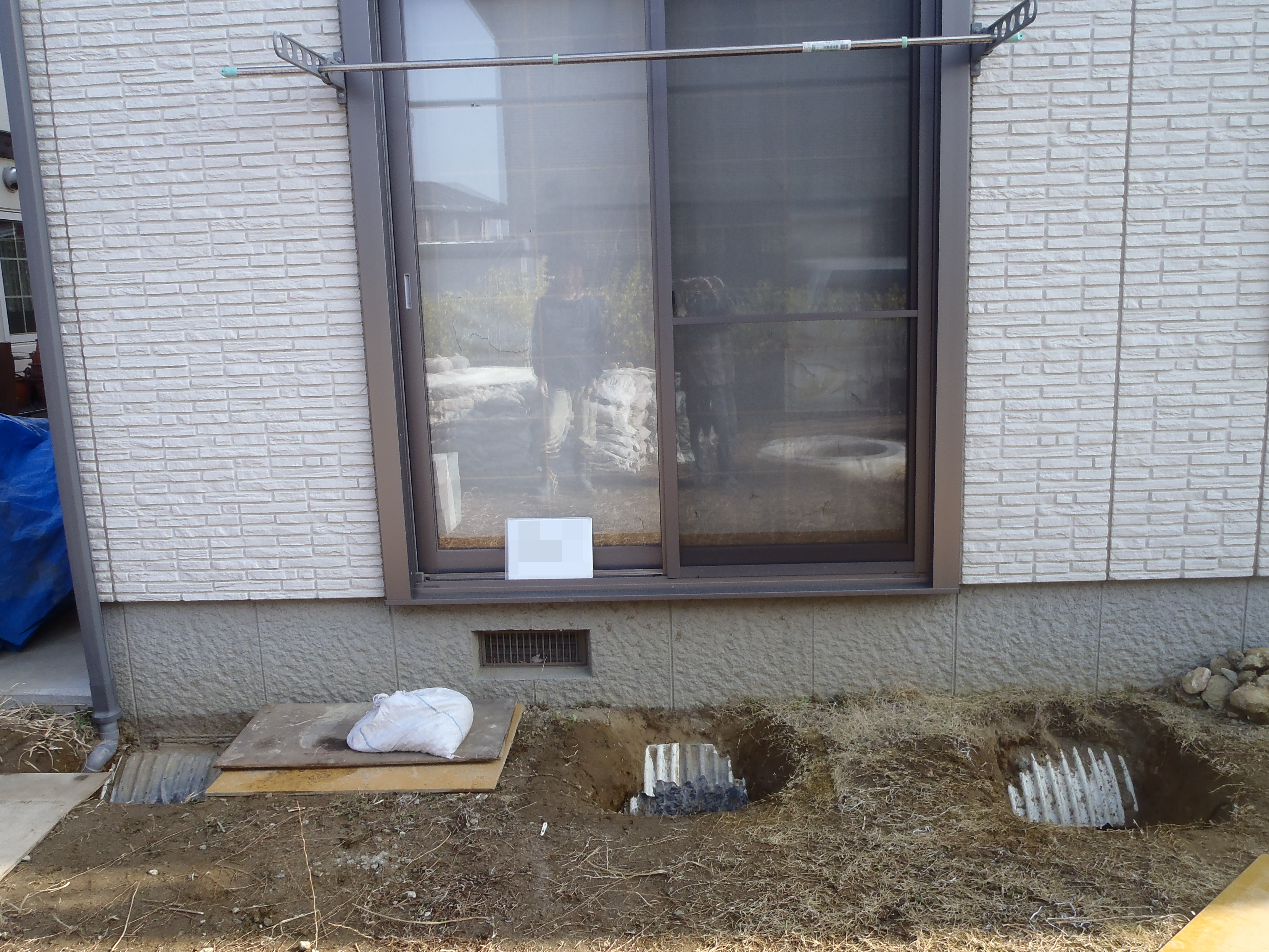 | 【施工前】 施工前状況です。穴掘り場所を決め、機材などの配置を考えています。 |